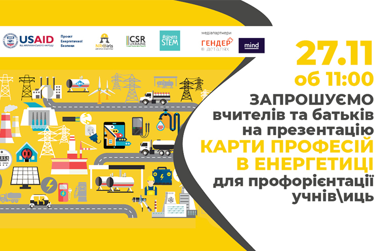 27 листопада об 11:00 Центр «Розвиток КСВ» презентує буклет «Твоє майбутнє в електроенергетиці» та профорієнтаційні уроки для учнів та учениць 5-10 класів. Буклет та уроки розроблені в рамках грантової ініціативи «Дівчата в енергетиці» за підтримки USAID Проєкту енергетичної безпеки (ПЕБ).