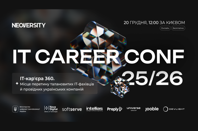 20 грудня відбудеться IT Career Conf 25/26 — найбільша онлайн-конференція про IT-кар’єру в Україні, яка об’єднає понад 10 000 учасників та 10+ провідних технологічних компаній. Організатор — онлайн IT-університет Neoversity.