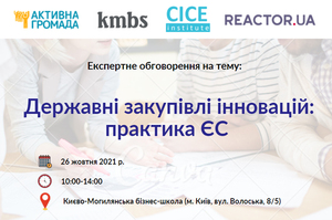 2511 Експертне обговорення на тему «Державні закупівлі інновацій: практика ЄС» 26 жовтня 2021, 10:00 Безкоштовно