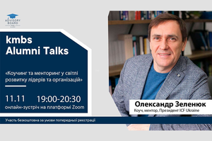 2193 kmbs Alumni Talks: «Коучинг та менторинг у світлі розвитку лідерів та організацій» 11 листопада 2021, 19:00 Безкоштовно