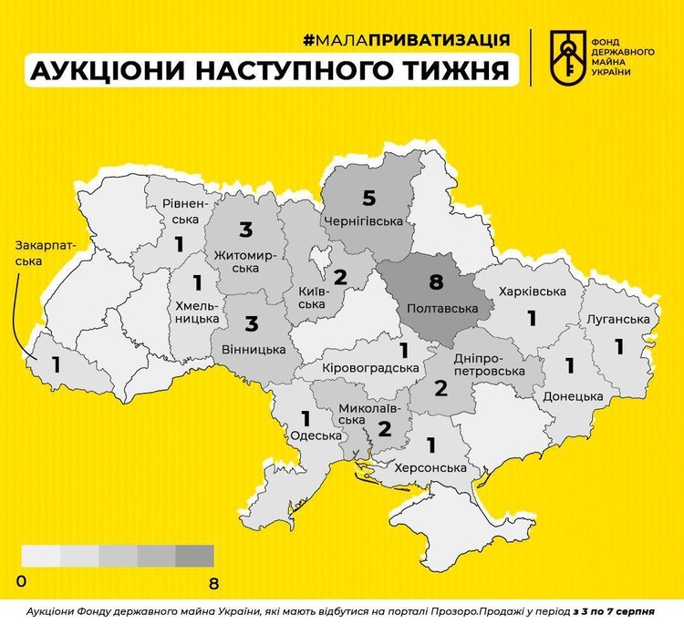 Фонд держмайна анонсує 34 онлайн-аукціони наступного тижня