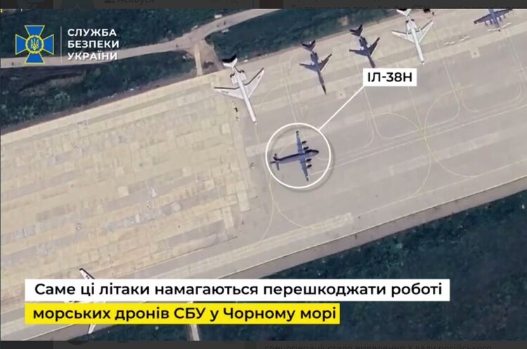 При підготовці до удару по підводному човну співробітники 13-го Головного управління Департаменту військової контррозвідки СБУ уразили модернізований літак-розвідник Іл-38Н («Sea Dragon») на авіабазі Єйськ, йдеться в повідомленні.