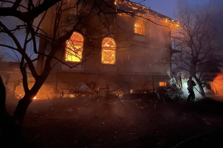 Державна служба України з надзвичайних ситуацій уточнила, що росіяни завдали комбінованого удару по місту. У декількох районах Києва внаслідок обстрілу виникли пожежі.
