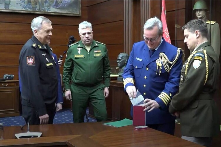 Міноборони рф пред'явило американцям навігаційний контролер, стверджуючи, що його витягли з українського дрона, який летів на резиденцію путіна в Новгородській області. Пристрій разом із розшифрованими даними маршруту БПЛА передали представнику апарату військового аташе США у москві.