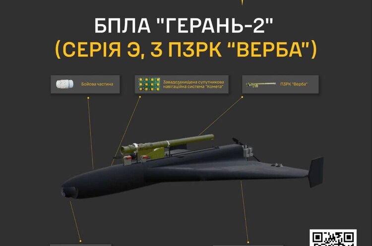 Головне управління розвідки оприлюднило інформацію про модифікацію російського дрона «Герань», здатного нести переносний зенітно-ракетний комплекс і бойову частину.
