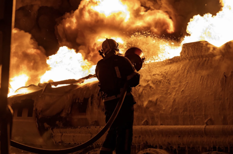 У Дніпровському районі внаслідок падіння уламків БпЛА виникла пожежа у гаражному кооперативі. Також палав бензовоз на стоянці. Внаслідок падіння уламків вибиті вікна у багатоквартирному житловому будинку.