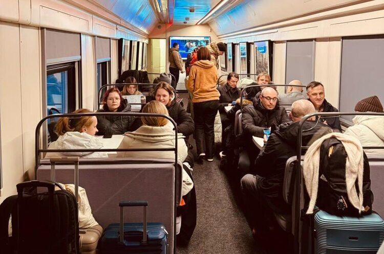 АТ «Укрзалізниця» розгорнула Пункт незламності в польському Холмі, де через реконструкцію вокзалу пасажири змушені очікувати на рейси до України надворі.