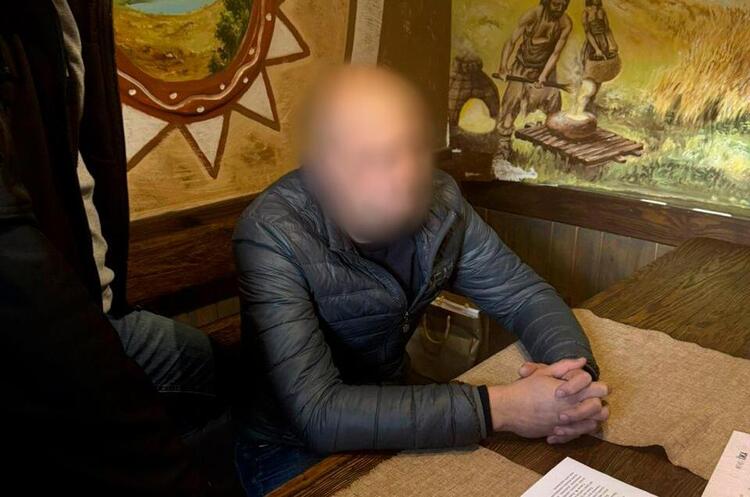 Його затримали 8 квітня під час передачі грошей. При особистому обшуку вилучено готівку та власноруч написану розписку.