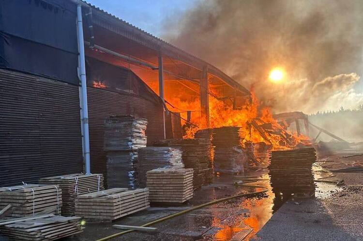 Вранці росіяни запустили 18 ударних дронів по Корюківці, на Чернігівщині. Під ударами були деревообробне та шпалерне підприємства. Двоє людей дістали поранення, вони у стані середньої тяжкості. Окрім підприємств, пошкоджені будинки та магазин. На місцях прильотів працюють вогнеборці.