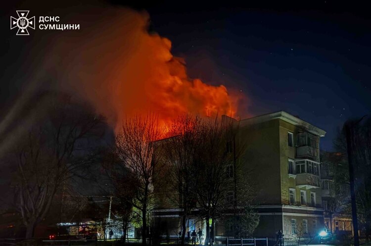 Уночі ворог завдав комбінованого удару по Шостці на Сумщині – зафіксовано три влучання на трьох локаціях. Під ударом був житловий сектор, виникли пожежі.