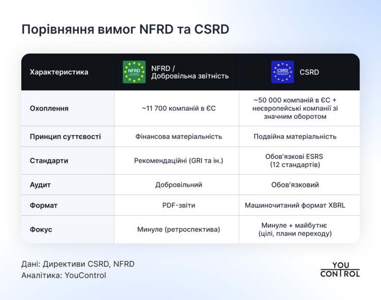- під CSRD підпадають компанії з ≥1000 працівників і чистим оборотом ≥450 млн євро;