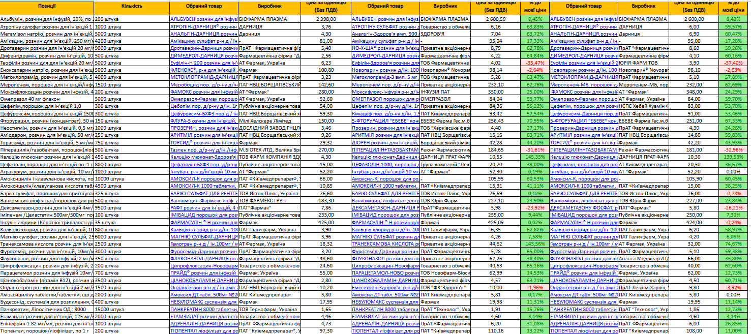 Наприклад, при закупівлі 90 позицій ліків, усього сім ваших цінових пропозицій можуть бути слабшими, але вони впливають на вашу кінцеву пропозицію, тому конкурент перемагає в тендері.
