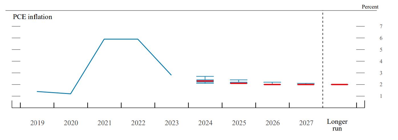 Прогнози членів FOMC щодо інфляції за індексом споживчих витрат PCE