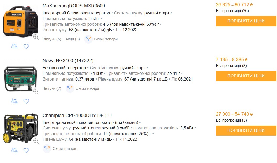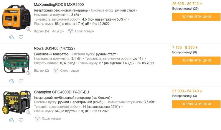 Для аналізу цін Mind відібрав всі ці типи генераторів потужністю від 3 до 10 кВт. Цього обсягу має вистачити на живлення оселі, невеликих магазинів, офісів тощо.