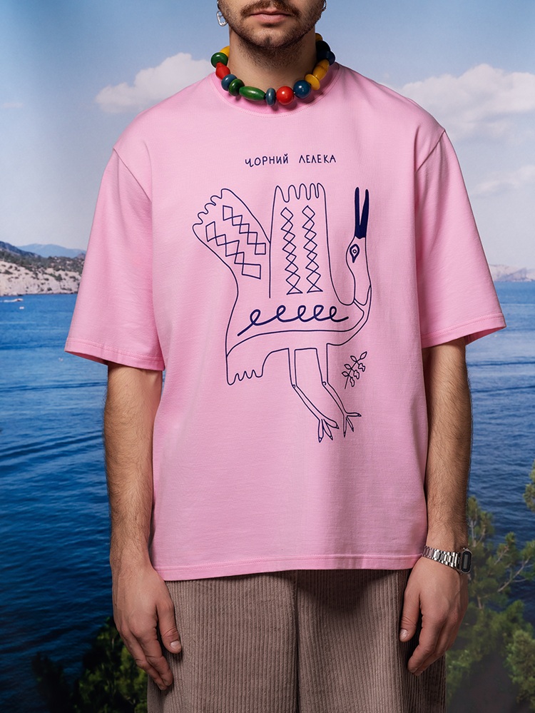 Футболка Лелека – також частина колекції «Червонокнижні». На футболці зображений чорний лелека – рідкісний вид, який охороняється Конвенцією з міжнародної торгівлі вимираючими видами дикої фауни і флори (CITES), Боннською та Бернською конвенціями.