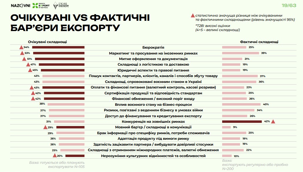 Очікувані vs фактичні бар’єри виходу на експорт