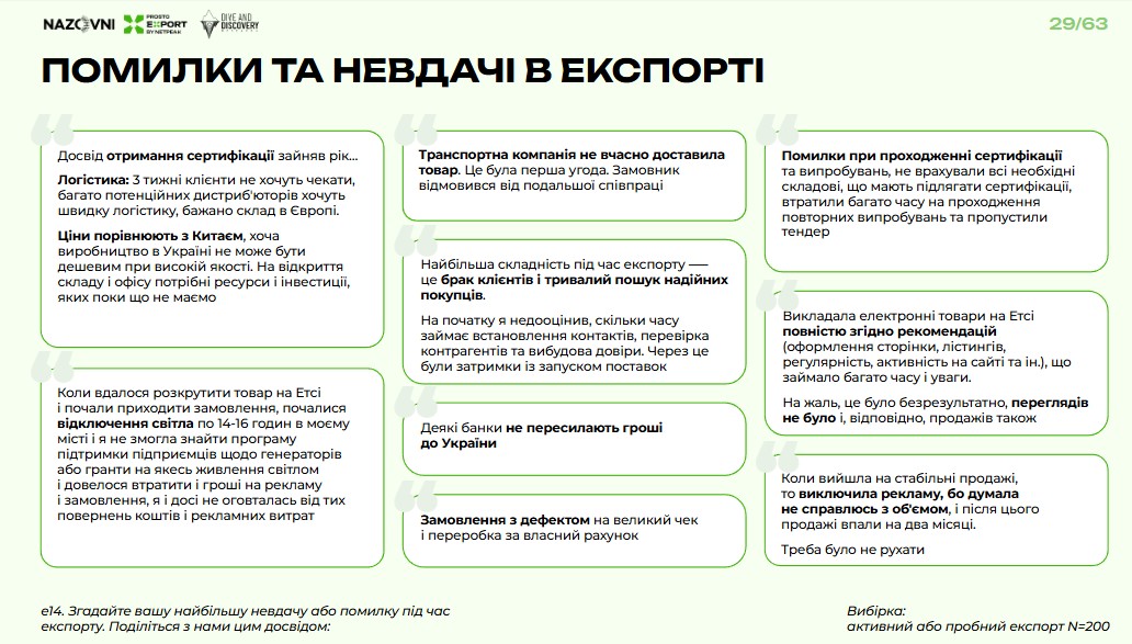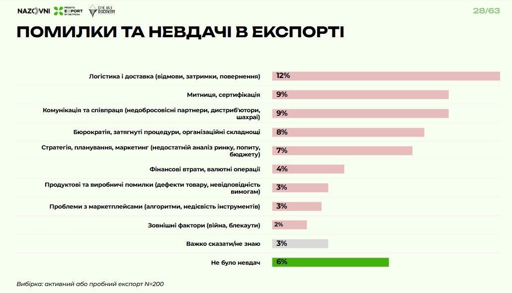 Лише 6% експортерів зазначили, що не мали жодних помилок при експорті. Інші розповіли про різноманітні невдачі.