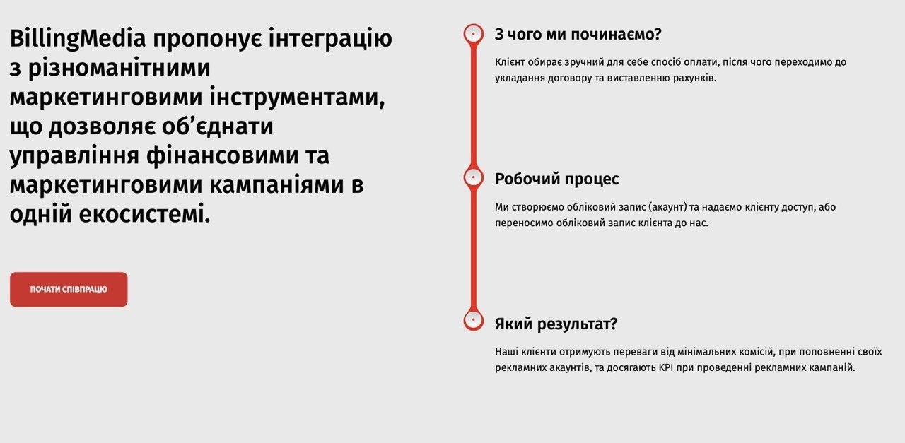 Тобто Billing Media пропонує не просто обслуговування рекламних акаунтів. Компанія допомагає мінімізувати операційну складність і зробити рекламу повноцінним елементом бізнесу.